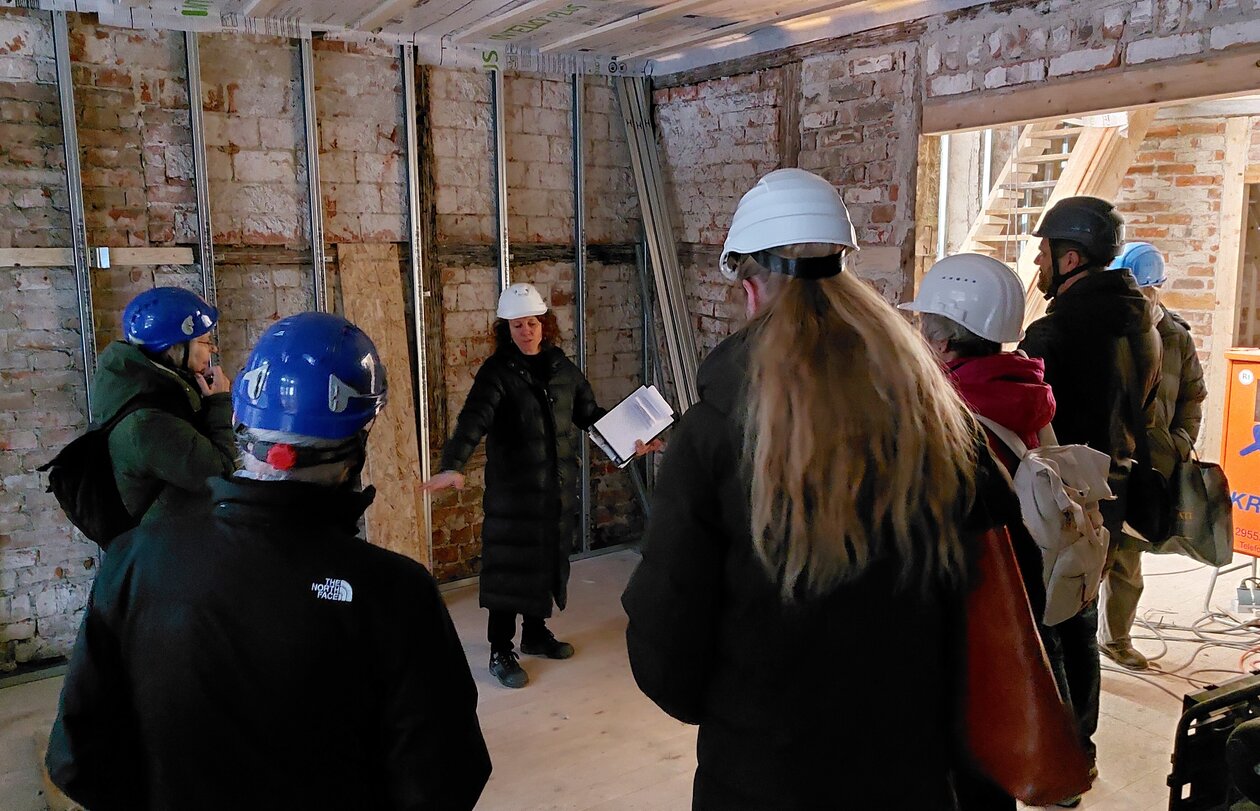 Das Netzwerk Klimaschutz und Baukultur Lüneburg / Heidekreis traf sich bei winterlichen Temperaturen in der Lüneburger Altstadt zu einer besonderen Führung durch eines der ältesten Sanierungs-Projekte in der Lüneburger Altstadt. Netzwerk-Mitglied und Architektin Judith Saborosch von Saborosch Architektur in Lüneburg führte durch das Objekt.