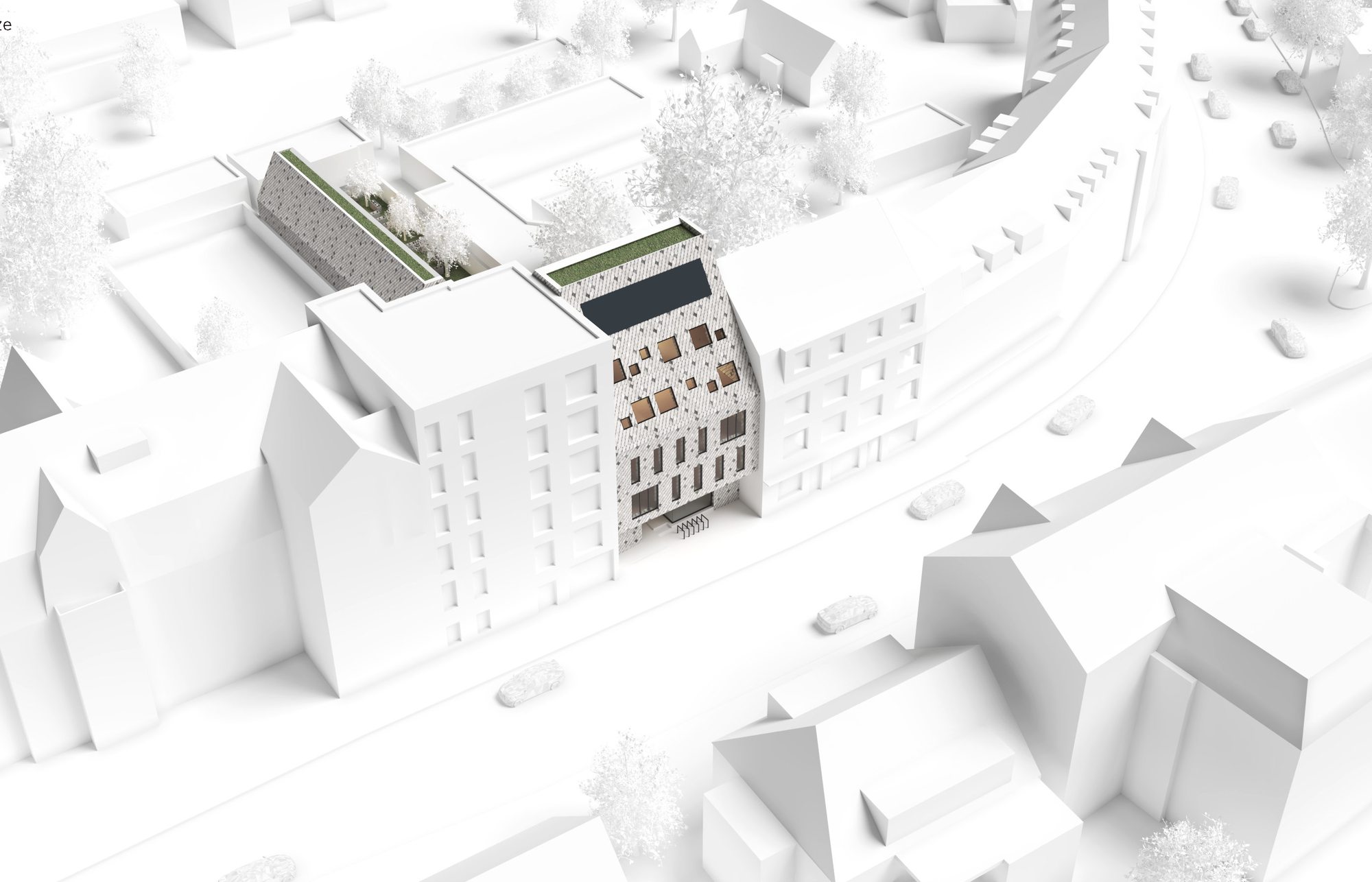 Technisch setzt das Projekt auf Suffizienz: Kein Aufzug, wenig komplexe Haustechnik und stattdessen natürliche Belüftung und effiziente Lösungen wie Infrarotheizungen in Kombination mit einer Photovoltaikanlage auf dem Dach. Darüber hinaus werden bauliche Anforderungen an Schall- und Lärmschutz hinterfragt, ohne dabei den Wohnkomfort aus den Augen zu verlieren. Das Ziel ist ein gesunder Baustandard, der ökologisch verantwortungsvoll und wirtschaftlich tragfähig ist und somit einen Beitrag zum kostengünstigeren Bauen der Zukunft leisten kann.