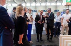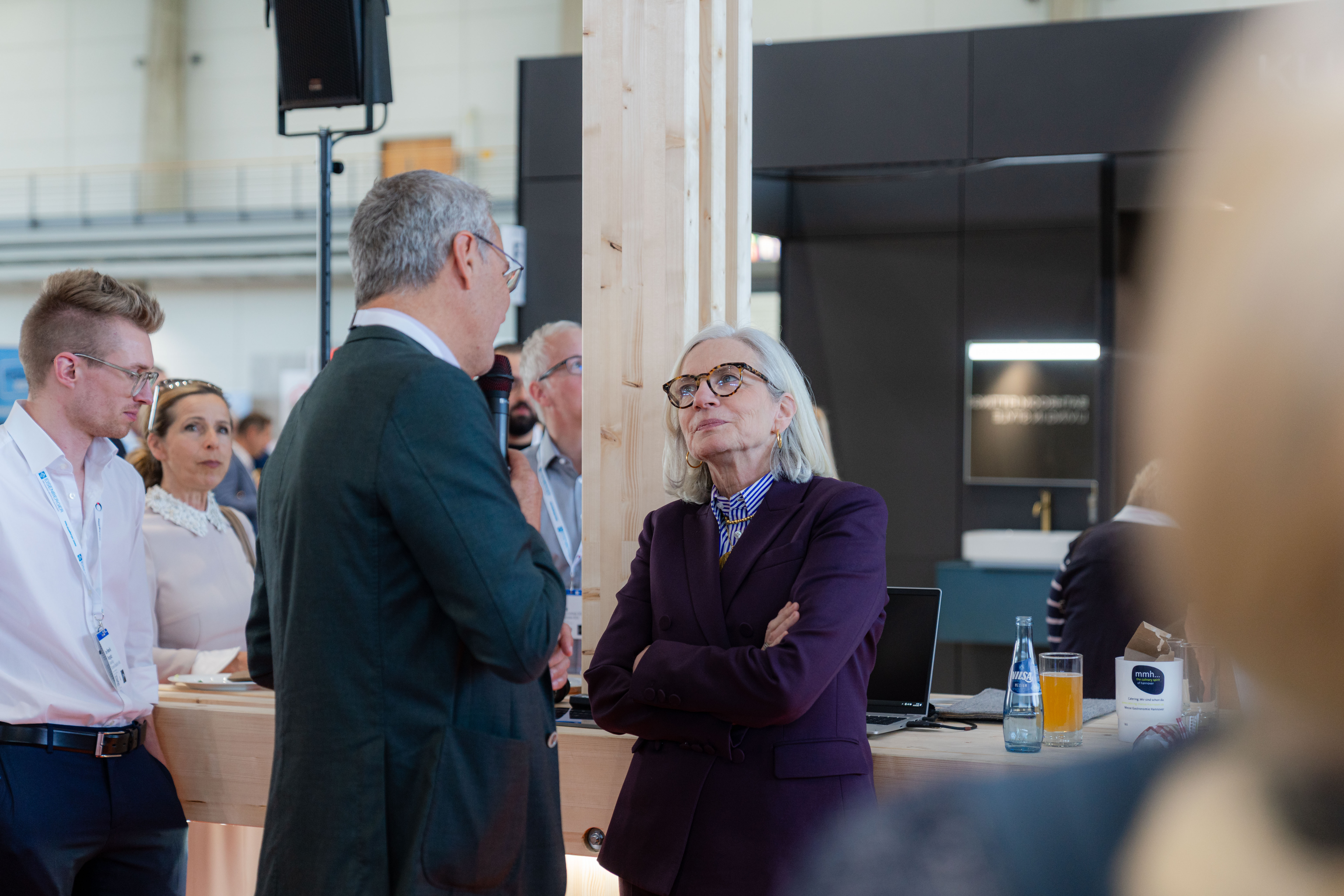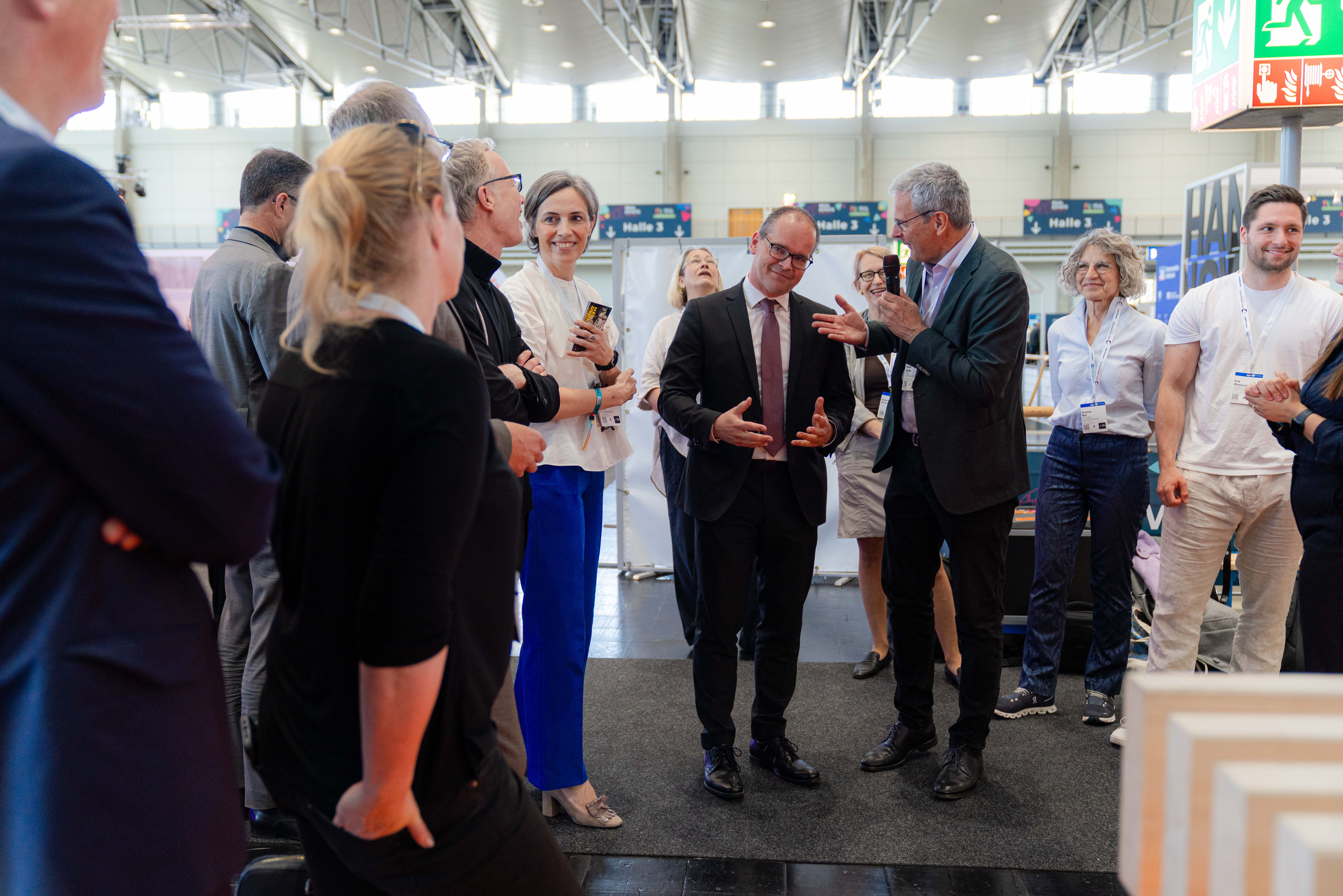 Erstmalig war auch die Bundesarchitektenkammer mit dabei und hatte am ersten Tag zu Rundgängen und einem sehr gut besuchten Netzwerktreffen am Stand eingeladen, dessen Teilnehmer von BAK-Präsidentin Andrea Gebhard und Kammerpräsident Robert Marlow begrüßt wurden. Und mit dem Besuch von noch-Landesbauminister Olaf Lies, dessen designiertem Nachfolger Grant Hendrik Tonne sowie Reinhold Hilbers fand sich über beide Tage hinweg auch die politische Prominenz am Stand ein.