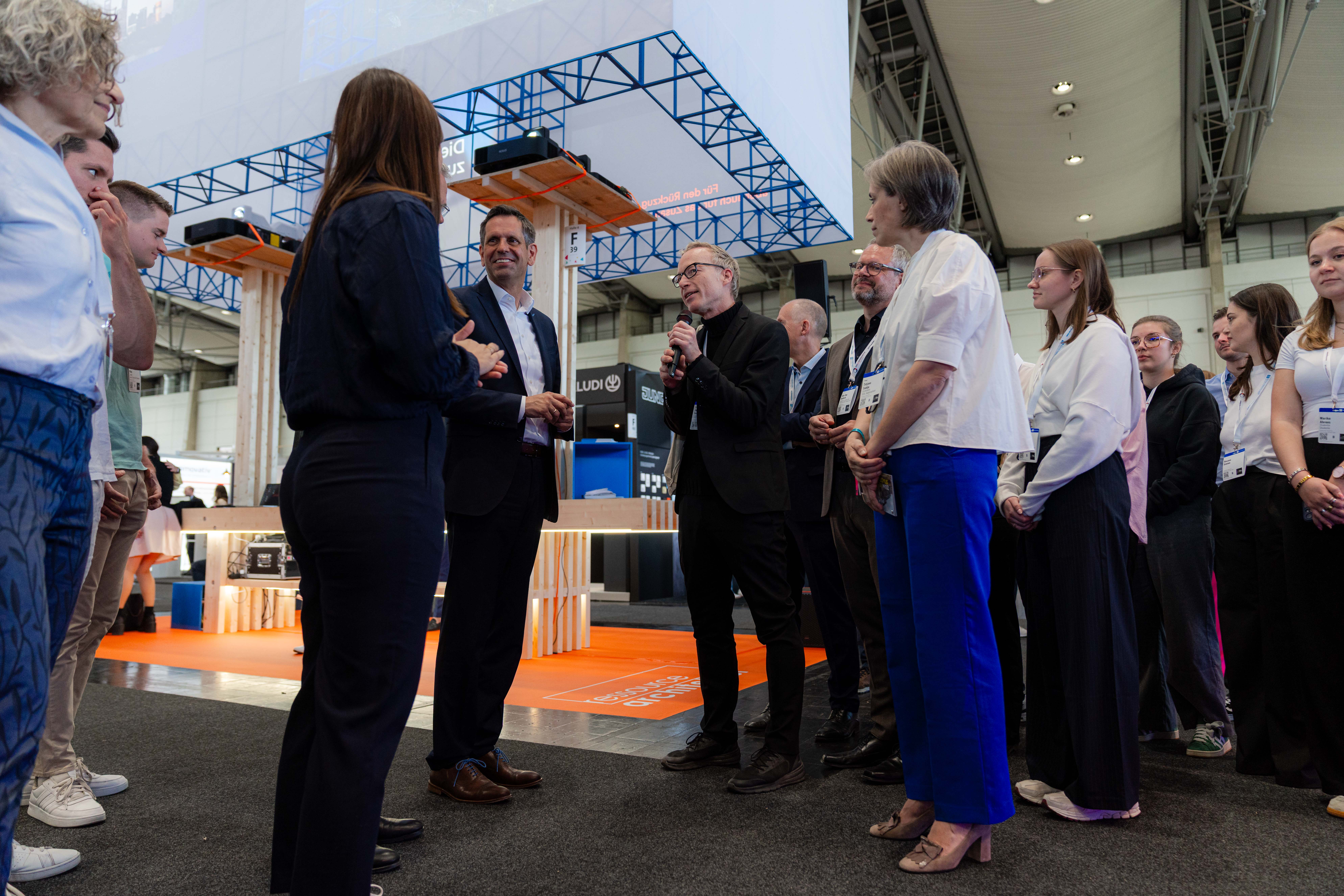 Auch beim Programm war der Input des beruflichen Nachwuchses gefragt – so zum Beispiel bei der Umfrage zu aktuellen Fragen zur Zukunft des Bauens, an der alle Messebesucherinnen und -besucher abstimmen konnten, bei Vorträgen, Präsentationen und Gesprächsrunden über die Verantwortung unseres Berufsstandes für unsere gebaute Zukunft: Wie wollen wir wohnen – auf dem Land und in der Stadt? Welche guten Beispiele gibt es? Welche Ideen, Ansätze, konkrete Angebote...? Wie kann die Transformation der kleinen und großen Städte gelingen? Und wie bewerten wir aus heutiger Sicht die baulichen und planerischen Maßnahmen der Vergangenheit...?