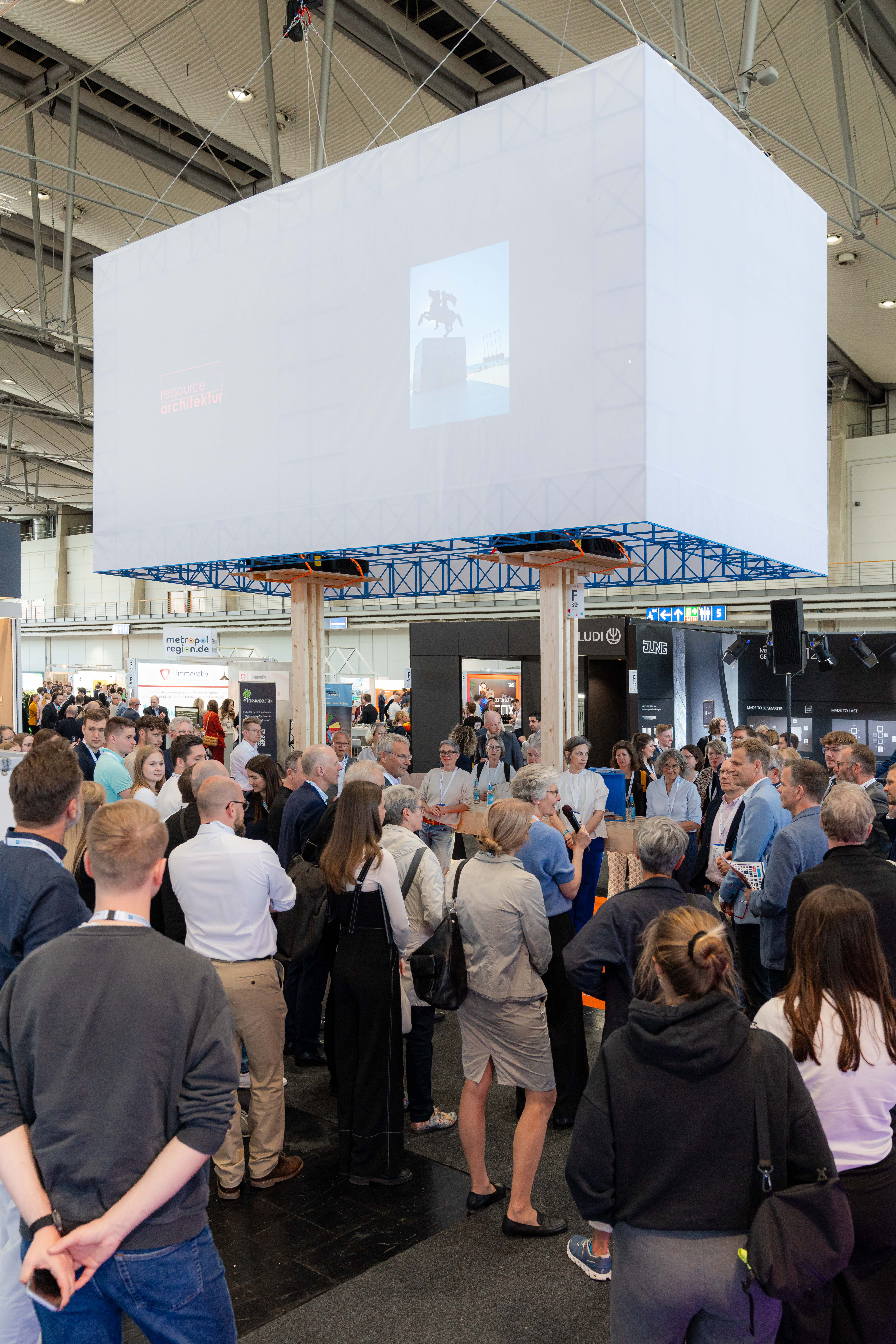 2024 war das Projekt „ressource.architektur“ wieder das Highlight der Real Estate Arena auf der Messe in Hannover: Ein Gemeinschaftsstand der Berufsverbände BDA, BDIA, BDLA, BDB, dem Netzwerk Baukultur Niedersachsen, der Architektenkammer Niedersachsen sowie der Leibniz Universität und der Hochschule Hannover: geballte Fachkompetenz geschärft durch den Blick der nachwachsenden Generation.